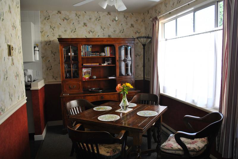 The “Cottage,” with its combination of antiques and contemporary furnishings gives a feeling of quiet luxury throughout. A fully equipped kitchen with fridge, stove/oven, and microwave is included. The added luxury of a dishwasher and an in-house washer-dryer combo make this the ultimate in “home away from home” comfort and convenience. The handsomely finished bathroom includes a large walk-in shower with unrestricted water flows.