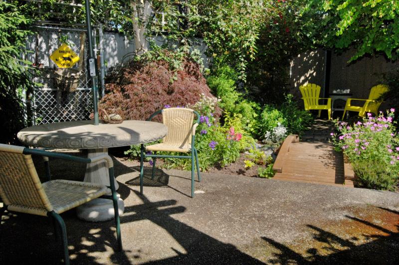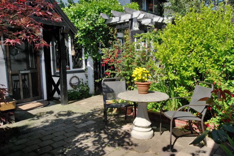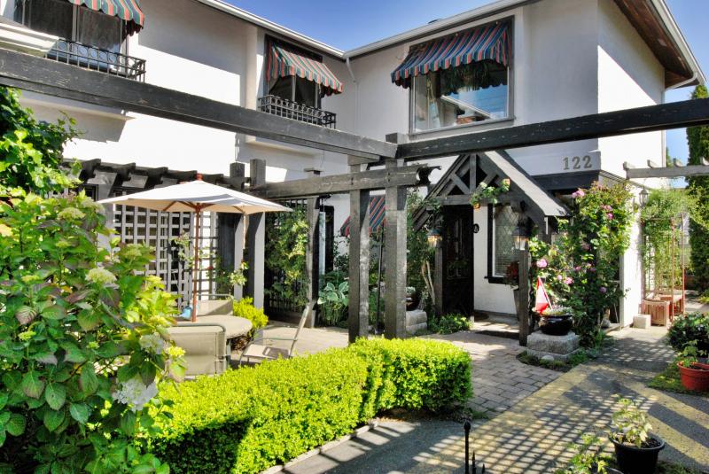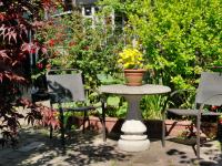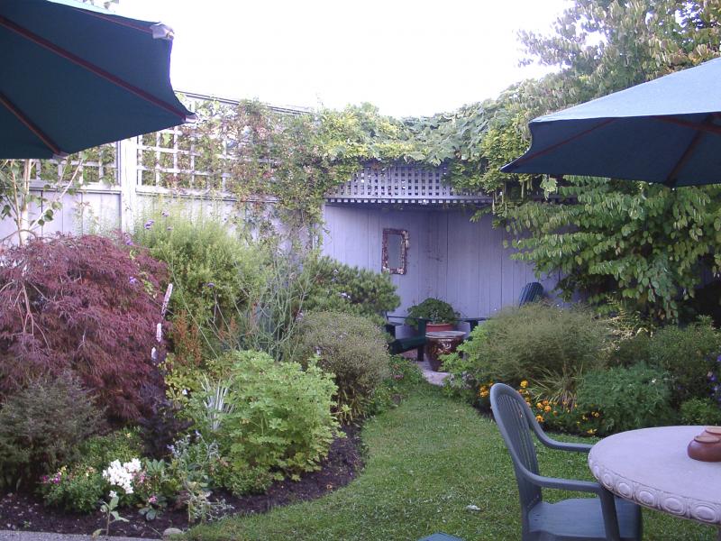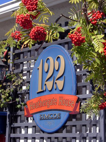 One of the most appealing features of Heathergate is the glorious, multi-hued garden and outdoor living space that surrounds it. Professionally landscaped and lovingly tended, this is a classic “English country garden” with plantings that range from rhododendrons to roses, manicured hedges to climbing shrubs. (The fact that Ned was a beekeeper helps guarantee that the grounds of Heathergate resemble an outdoor florist shop.) A riot of colour and texture – especially in summer – this abundant garden is very much an outdoor extension of the guest rooms at Heathergate. Whether reading a book or sipping your coffee – or glass of Chardonnay! – you can relax in the fresh air and savour the beauty of well-groomed nature while planning the day’s activities.